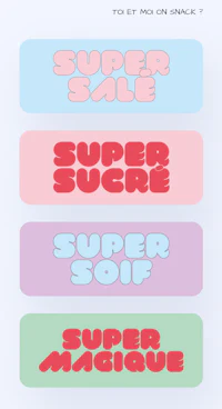Supersnack est un concept de salon de thé / coffee shop uniquement en ligne et en click and collect. Création de l’identité visuelle, de stickers, d’illustrations, création de la progressive web app (PWA), mise en place du module de livraison... Projet en attente.